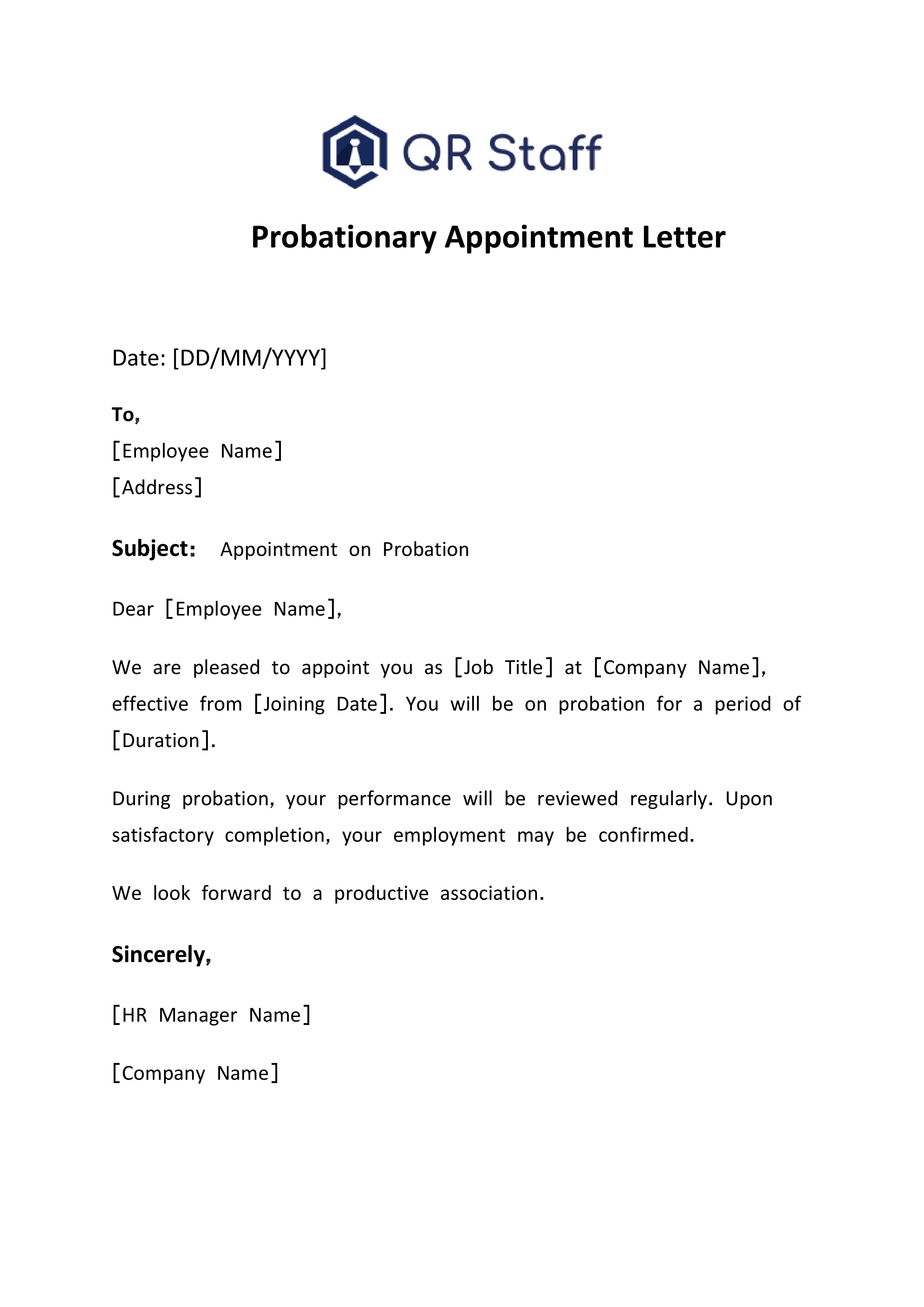 A Probationary Appointment Letter is issued when a candidate is hired by the company on probation for a specified period before being confirmed permanently. It enables both the employer and employee to assess the compatibility.